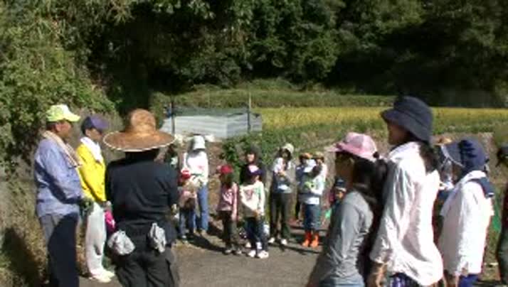 刈りとる稲はたけのこ学級で今年6月に植えたもので