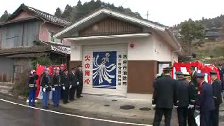市内の消防団、第14分団の格納庫が新しく完成し、