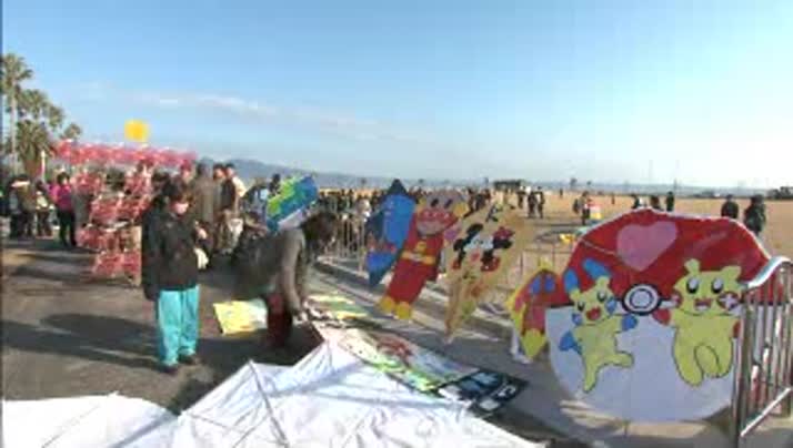 この日揚げた凧は平面なものから立体的なものまで様々で