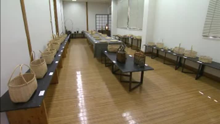 大小様々なカゴやバッグ・弁当箱などの作品56点が並びました。