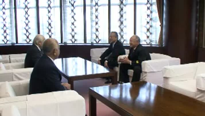 続いて消防団長の半被と階級章が浜田市長に返還されました。