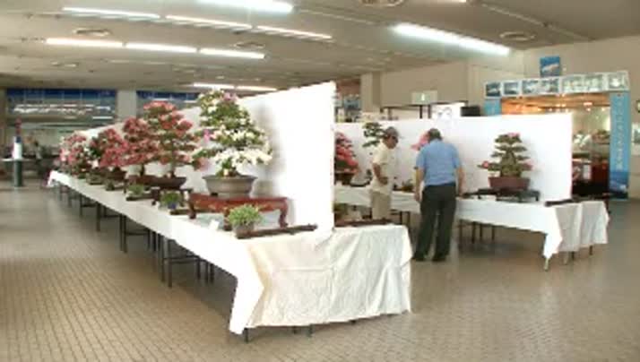 赤、白、ピンクと色とりどりのさつきが並んでいます。