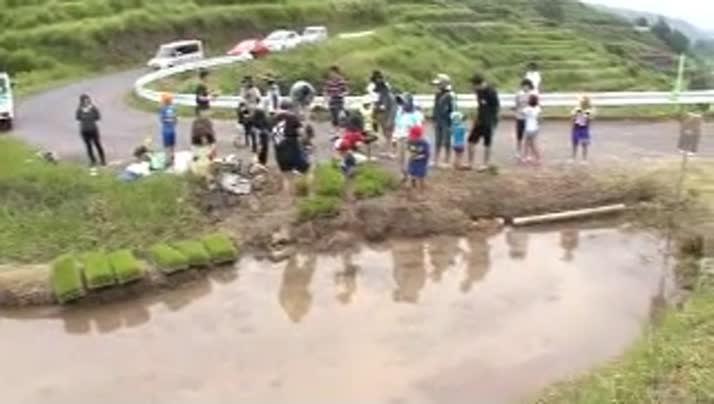 別府市内成の棚田で田植えを体験しました。