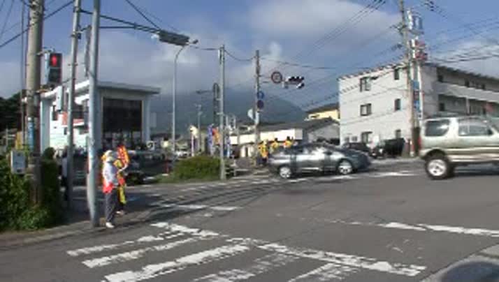 今朝、県内では一斉に街頭啓発活動が行われました。別府市鶴見の原交差点では