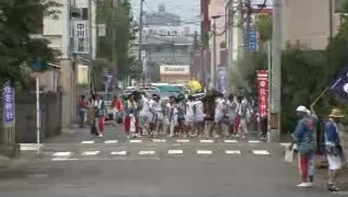 白装束の大学生、地域の人たちの他、