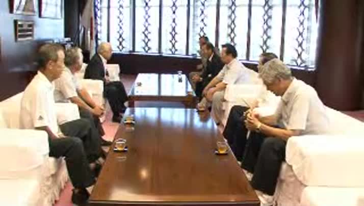市長に報告を行い、中島正一監督が宣誓をしました。