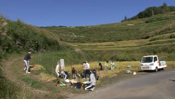 別府市内成で稲刈り体験が行われました。この稲刈り体験は