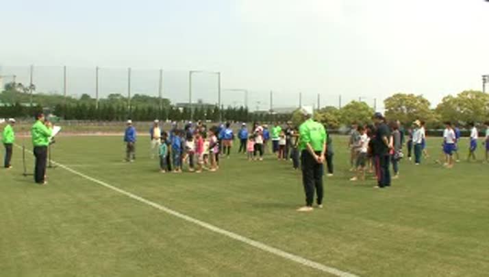裸足になって天然芝の上で遊ぶイベントが開かれました。このイベントは、普段裸足になって遊ぶことの少ない子ども達に