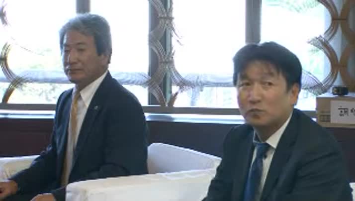 調印式では別府地区LPガス協議会の川上俊作会長と
