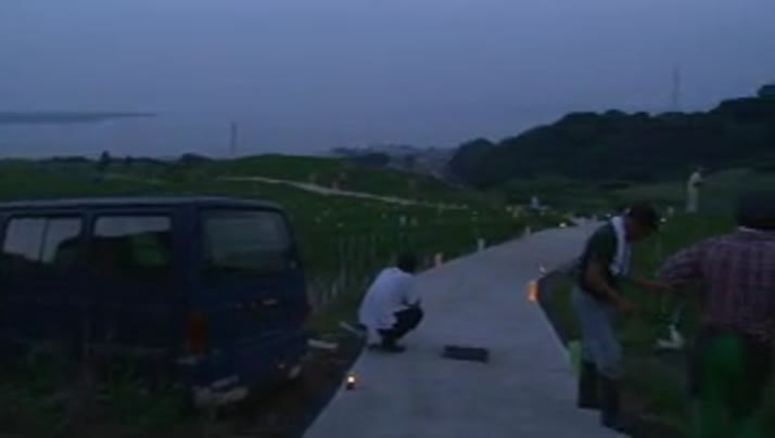 灯篭の明かりが灯されました。6年前から再生を行ってきた、内竃の堂面棚田。