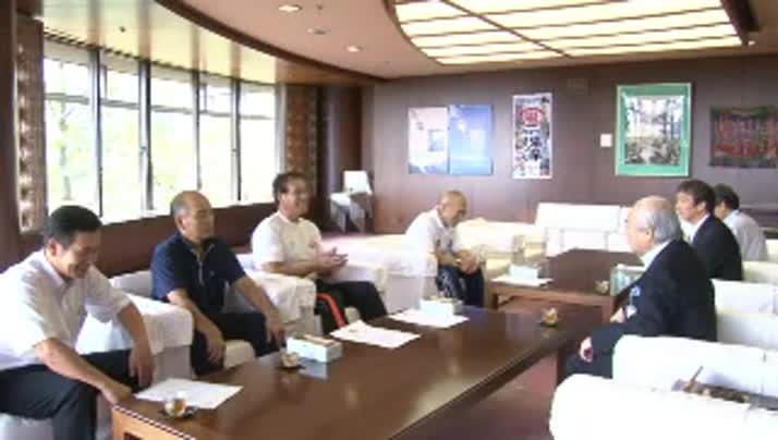 活躍した選手が別府市役所を訪れ、成績を報告しました。第32回全日本マスターズ