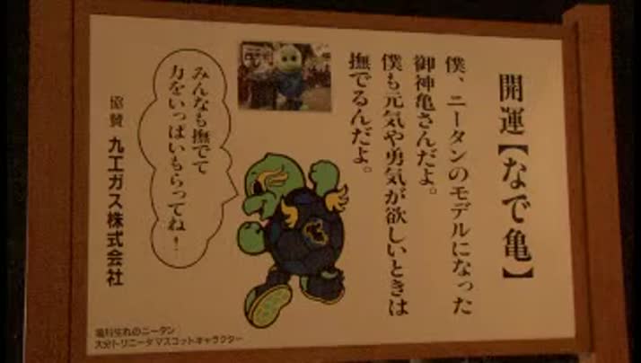 大分トリニータのマスコットキャラクター「ニータン」発祥の地でもある「八幡竈門神社」。大晦日の12時をまわり、新しい年を迎えると地元の参拝客が訪れ、今年一年の無事や家内安全などを祈っていました。