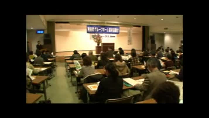 開会のあいさつの後、2部構成で講演会が行われ、第1部では「家族会の活動と本人支援」と題して、「認知症の人と家族の会」事務局長の藤田淳子さんが、施設などで支援を受けながら、実際に働いている人の事例を紹介しました。