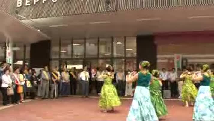 別府駅前でオープニングセレモニーが行われました。「社会を明るくする運動」は、すべての国民が、犯罪や非行の防止と