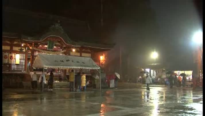 餅などを受け取り、本殿から「鬼は外、福は内」の
