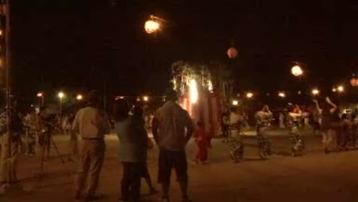 除草作業が行われたやまびこ広場の中央には櫓が立てられ