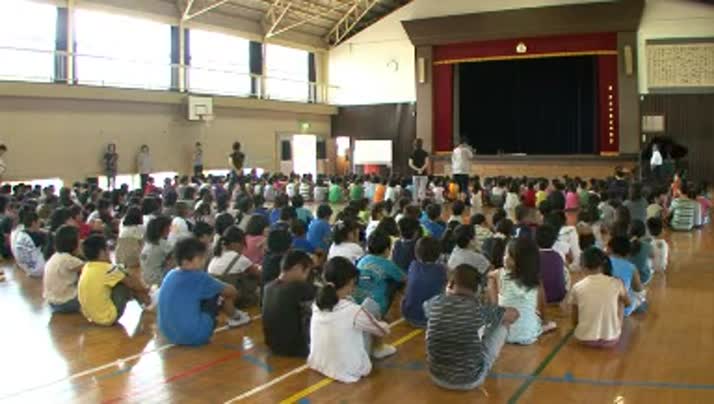 児童代表5人が夏休みの思い出や、