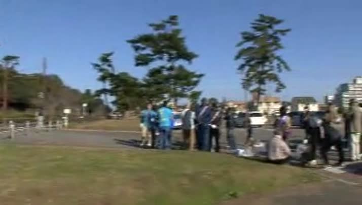 参加者のみなさんはビニール袋を手に別府公園駐車場を出発。