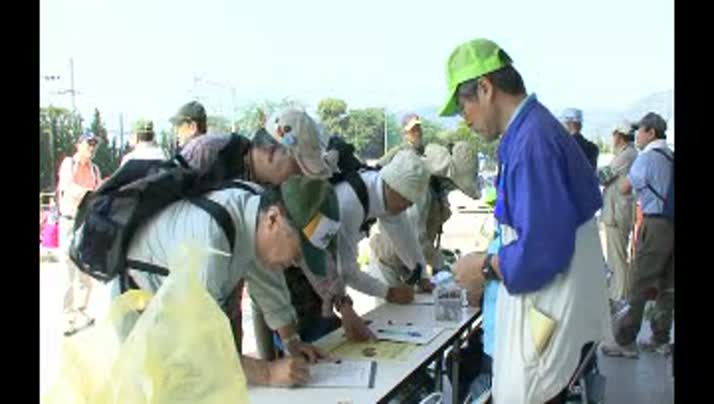 出発地点の豊岡小学校で軽いストレッチを行った後