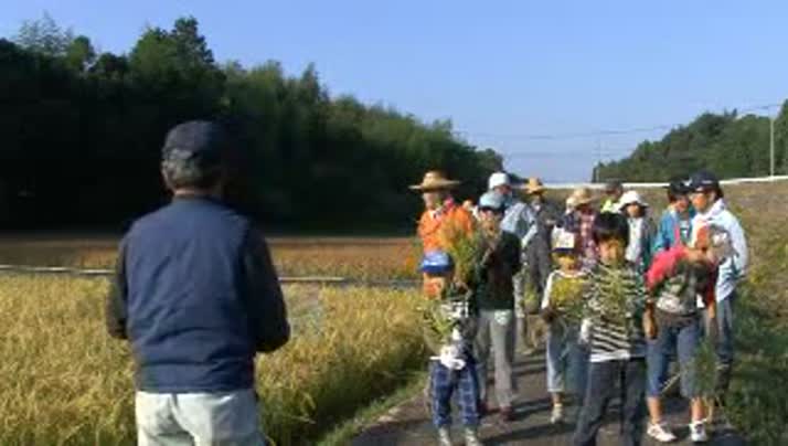 - 子ども達が稲刈りを体験