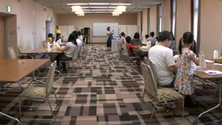 エコランタンを作る親子クラフト教室が開かれました。この教室は、労働者の福利厚生の充実を計る、