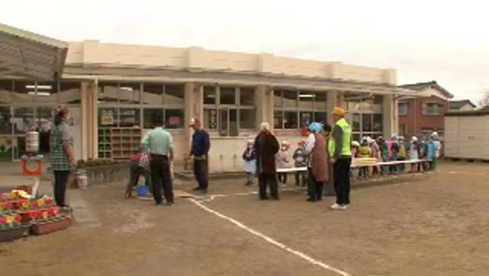 子ども達はおばあちゃん達が、手際良く取り分けたおもちを