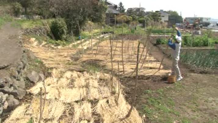 帯刀さんの畑で育つトゲが無いタラの芽は
