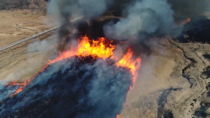 背丈ほどに伸びた草を燃やし順調に燃え広がっていました。
