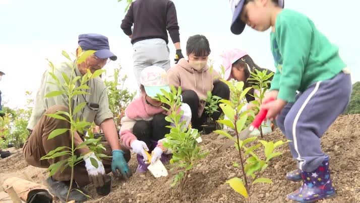 この日植樹したのは、東日本大震災の津波に耐え抜いたタブの木や