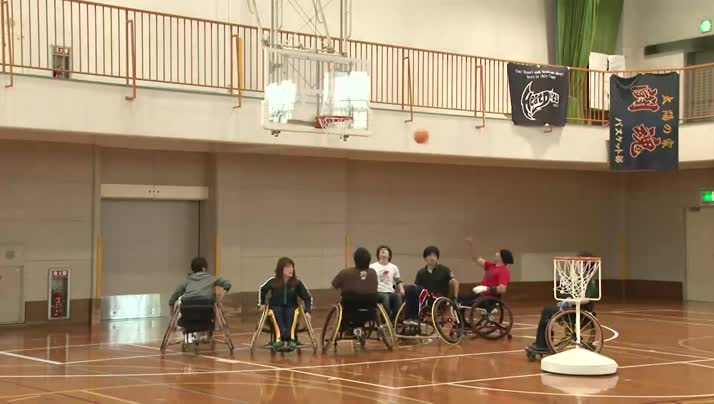 車いすツインバスケットボールは通常の高さ3メートル5センチのゴールに加え、