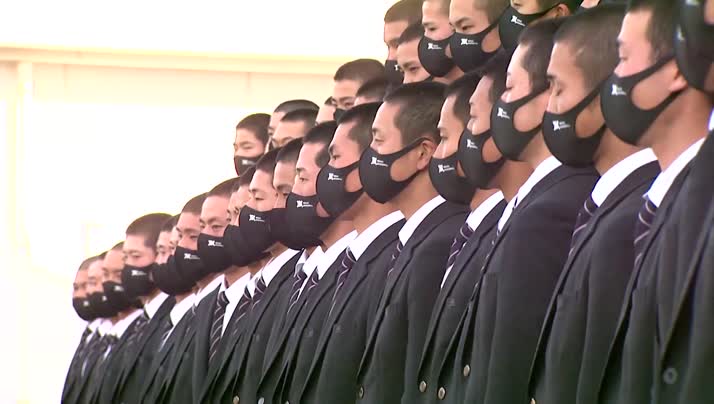 きのう8日、学校のグラウンドで開かれた壮行会には、