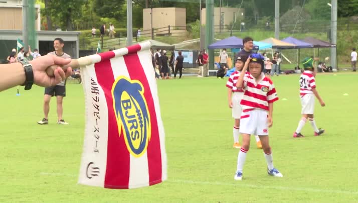 小学3・4年生の児童らは7人制のラグビーで迫力のある試合を