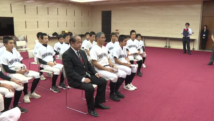 2日、市役所を訪れたのは、鶴見台中学校野球部の選手と