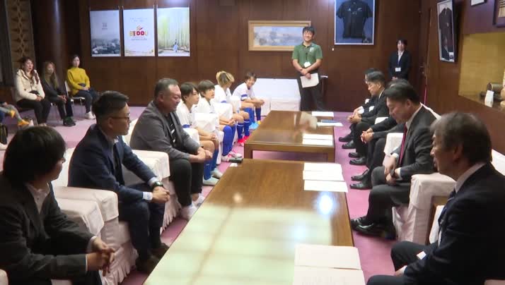 この日、チームのメンバー5人と監督らが市役所を訪れ、
