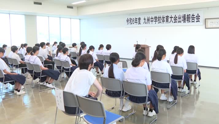 大会日程が紹介され、大神中学校 女子ソフトテニス部の
