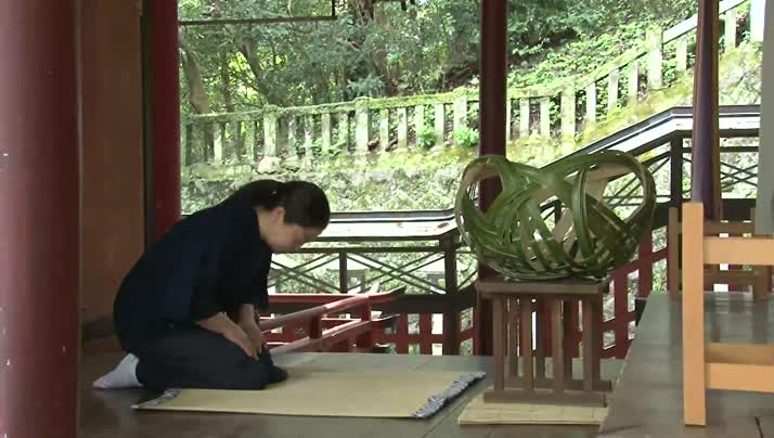 神社に奉納する「四海波」と呼ばれる竹かごを作りました。