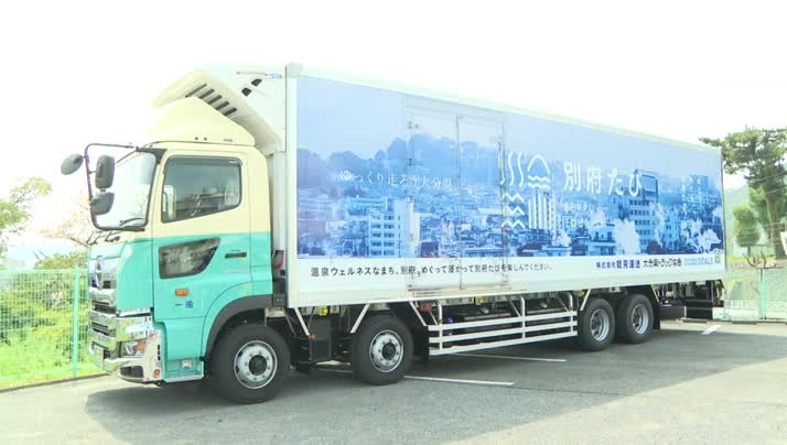 荷台側面に湯けむりが立ち上る別府市の町並みをデザイン。